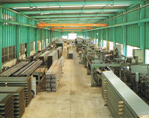 福島工場では、都市の高層化に伴って拡大する市場ニーズに即応するため、コンピュータ自動制御のレール加工専用機を早くから導入するなど、自動化・省力化を柱とする近代設備のもとに、顧客の要求制度や納期に応える生産体制を整えています。